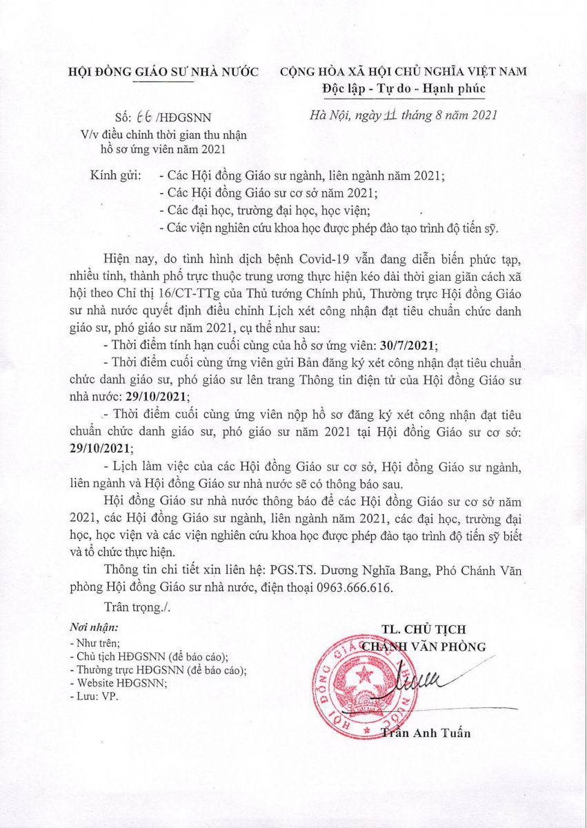 >> Thông báo lịch điều chỉnh xét công nhận đạt tiêu chuẩn GS.PGS năm 2021 lần 3