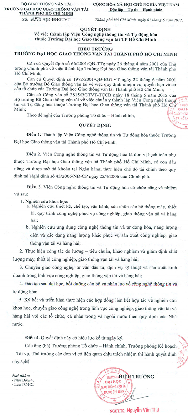 Quyết định V/v công nhận Hiệu trưởng Trường ĐH Giao thông vận tải TP.HCM nhiệm kỳ 2020-2025