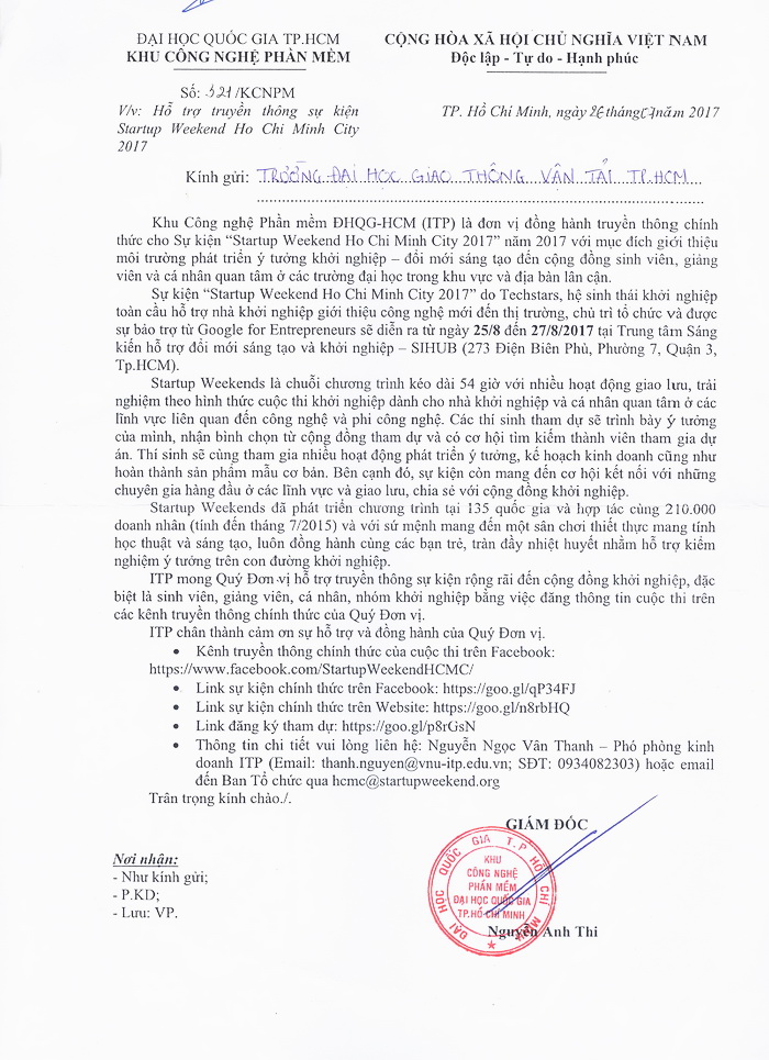 Hỗ trợ truyền thông sự kiện Starup Weekend Ho Chi Minh City 2017 của Khu Công nghệ phần mềm (ĐH Quốc gia TP. HCM" (Cập nhật ngày: 16/08/2017)