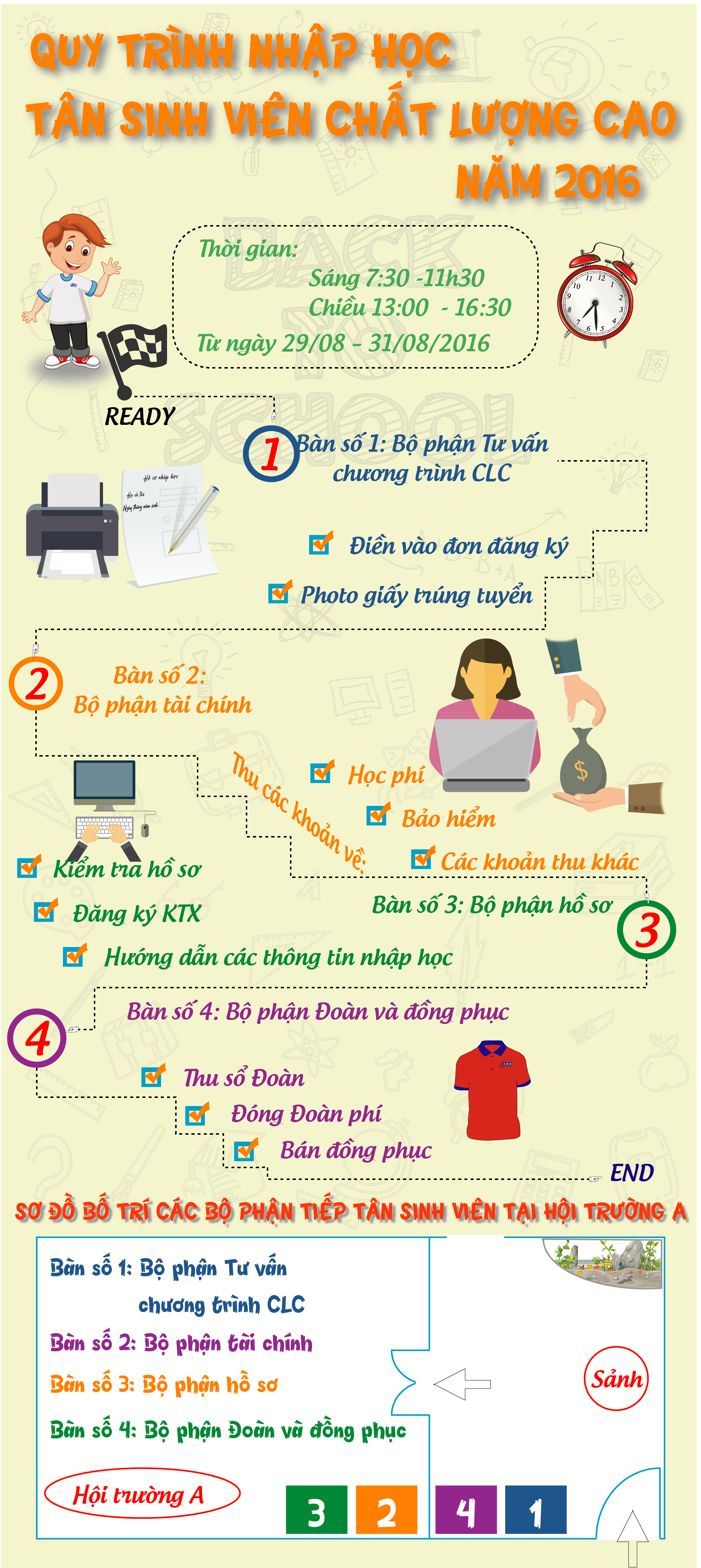 + Bộ phận tiếp nhận hồ sơ và phân loại hồ sơ, đăng ký Khu nội trú. Hướng dẫn các thông tin sau khi nhập học