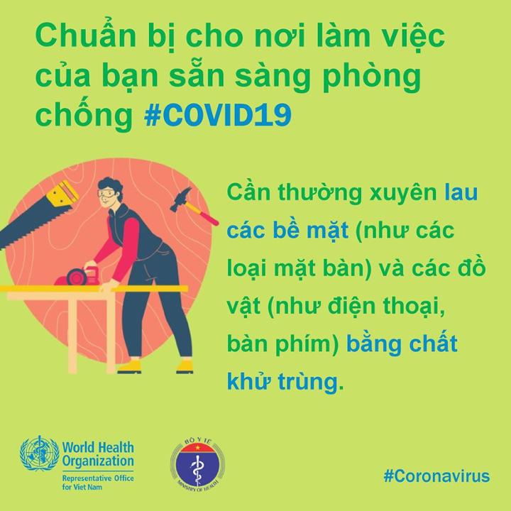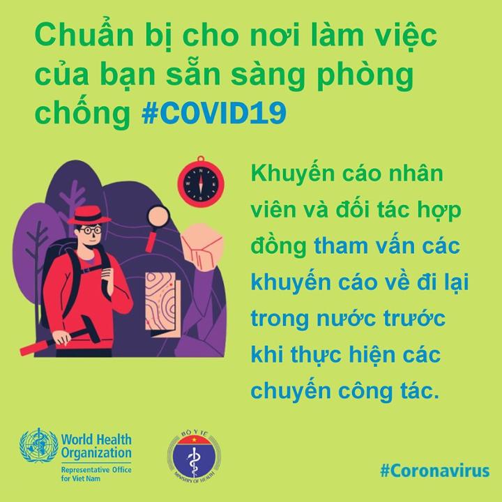 Tổ chức Y tế Thế giới (WHO) đưa ra những lời khuyên đối với các cơ quan, công sở cũng như người lao động để đảm bảo tốt phòng chống dịch COVID-19.