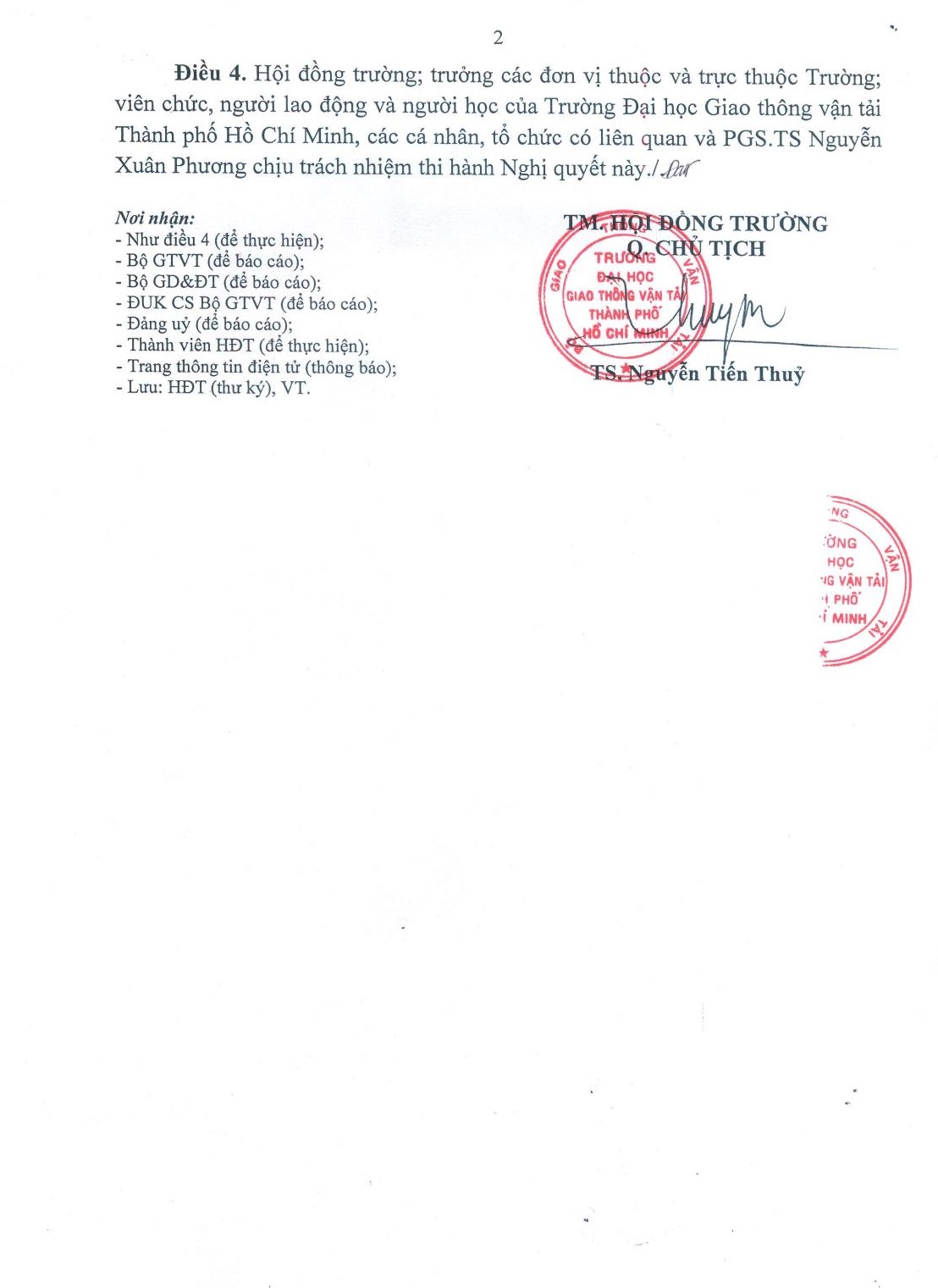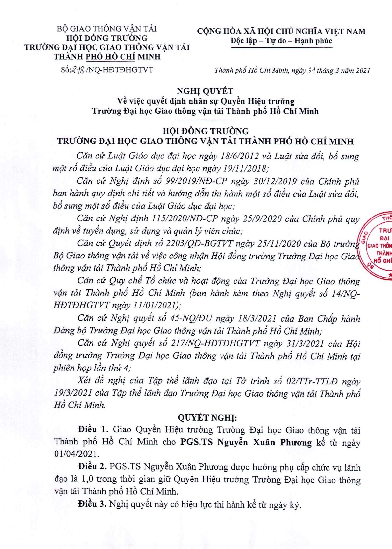 Nghị quyết V/v Quyết định nhân sự Quyền Hiệu trưởng Trường ĐH Giao thông vận tải TP. Hồ Chí Minh (Cập nhật ngày: 01/04/2021)