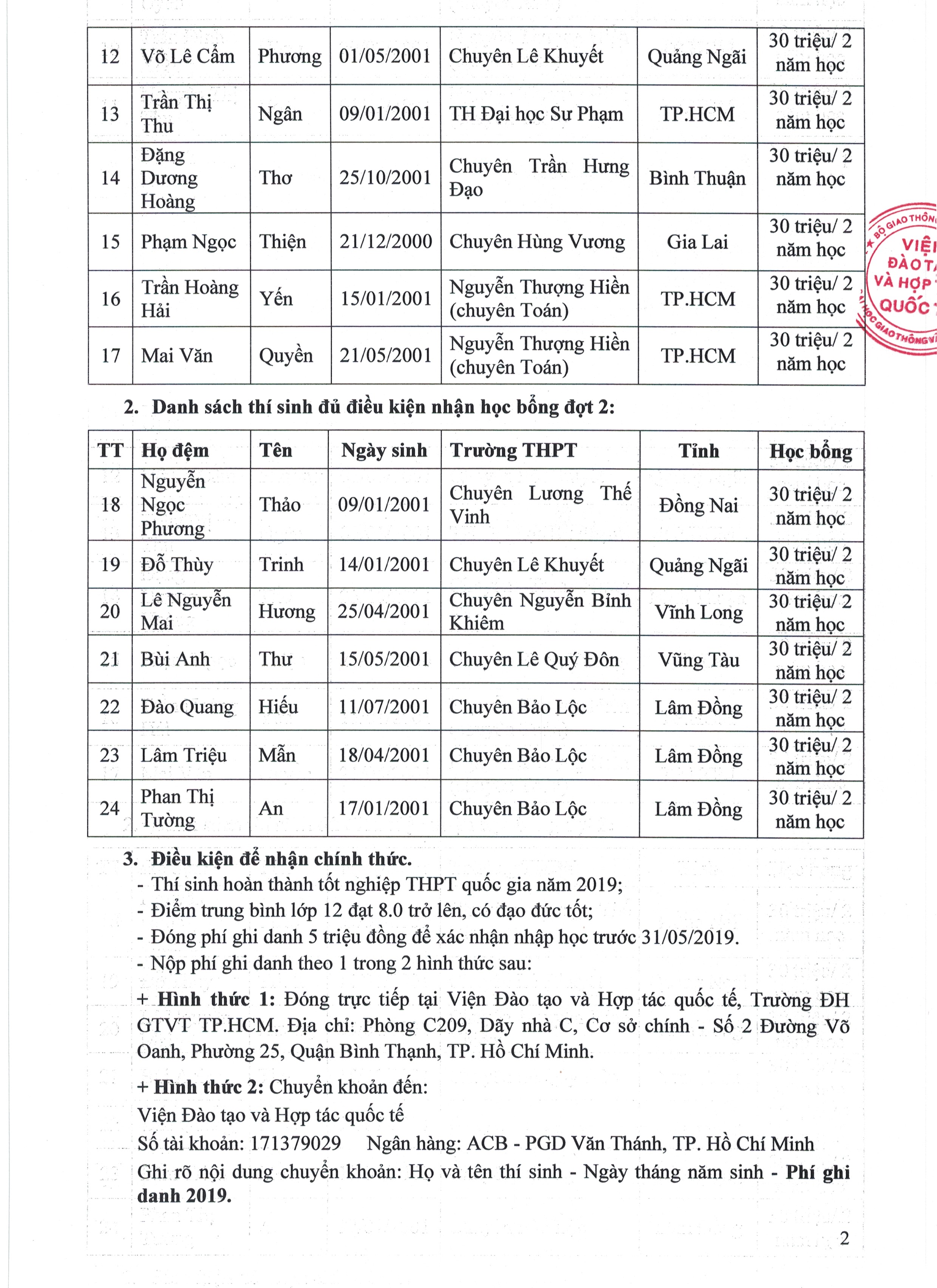 Thông báo kết quả xét học bổng 30 triệu đồng/suất cho học sinh các trường chuyên đợt 1 + đợt 2 năm 2019 chương trình đào tạo nước ngoài (Cập nhật ngày: 23/04/2019)