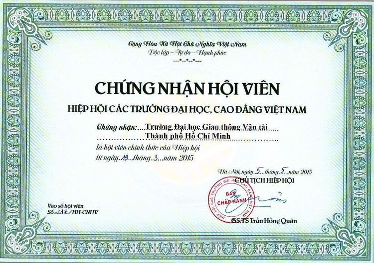 Trường ĐH Giao thông vận tải TP.HCM là hội viên của Hiệp hội các trường ĐH-CĐ Việt Nam (Cập nhật ngày: 29/05/2015)