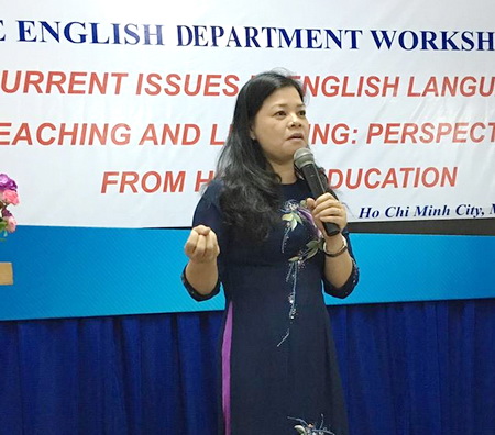 TS. Vũ Thị Lan Anh, Trưởng Bộ môn Ngoại ngữ với đề tài “Dạy Tiếng Anh qua thuyết trình trên lớp”. Đề tài thiết thực phù hợp với thực tế giảng dạy các chuyên ngành tại các trường ĐH nói chung và trường ĐH GTVT TP. HCM nói riêng. Thông qua các buổi thuyết trình trên lớp, sinh viên có cơ hội nâng cao năng lực giao tiếp Tiếng Anh và được trang bị các kĩ năng cần thiết để chuẩn bị hành trang cho công việc trong tương lai.
