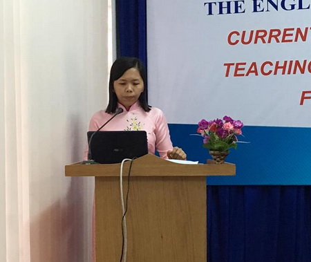 TS. Vũ Thị Lan Anh trình bày đề tài "Dạy tiếng Anh qua thuyết trình trên lớp"