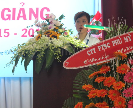 Sinh viên Nguyễn Thị Thuỳ Dương (lớp KT13B) phát biểu cảm tưởng trong Lễ khai giảng