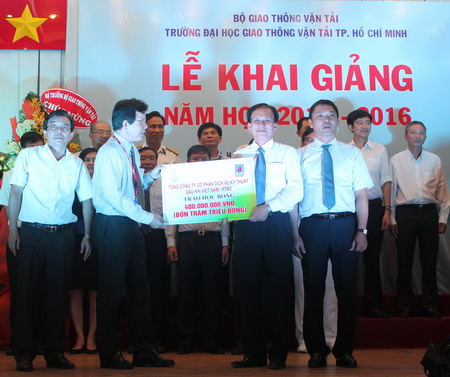 Trong thời gian qua, nhiều cơ quan, doanh nghiệp trong và ngoài lĩnh vực giao thông vận tải đã chung tay cùng Trường trong những hoạt động khuyến học. Năm học 2015-2016, Nhà trường cũng đã tiếp tục nhận được sự quan tâm của rất nhiều các mạnh thường quân thông qua số tiền tài trợ gần 5,1 tỉ đồng. Đặc biệt, đồng chí Đinh La Thăng, Chủ tịch danh dự quỹ học bổng “Thắp sáng niềm tin” đã trao 40 suất học bổng cho sinh viên có hoàn cảnh khó khăn, vượt khó trong học tập (mỗi suất trị giá 5.000.000đ).