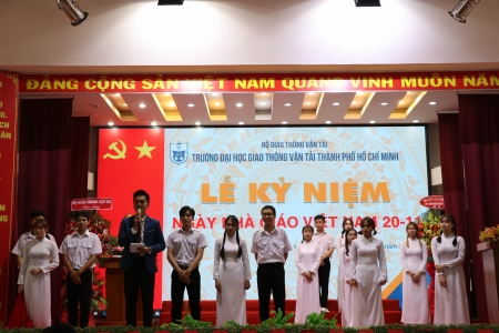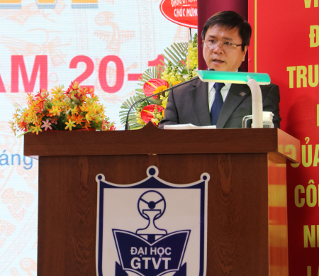 PGS.TS. Nguyễn Xuân Phương, Phó Bí thư Đảng ủy, Phó Hiệu trưởng Nhà trường đọc thư chúc mừng của Bộ trưởng Bộ Giao thông vận tải gửi các trường thuộc Bộ nhân ngày Nhà giáo Việt Nam. Trong thư, Bộ trưởng mong các cán bộ, giảng viên, viên chức và các em học sinh, sinh viên phát huy những thành tích đã đạt được, nỗ lực phấn đấu để nâng cao chất lượng đào tạo nghiên cứu khoa học, học tập để cung cấp nguồn nhân lực chất lượng ngày càng cao cho ngành GTVT và cho đất nước.