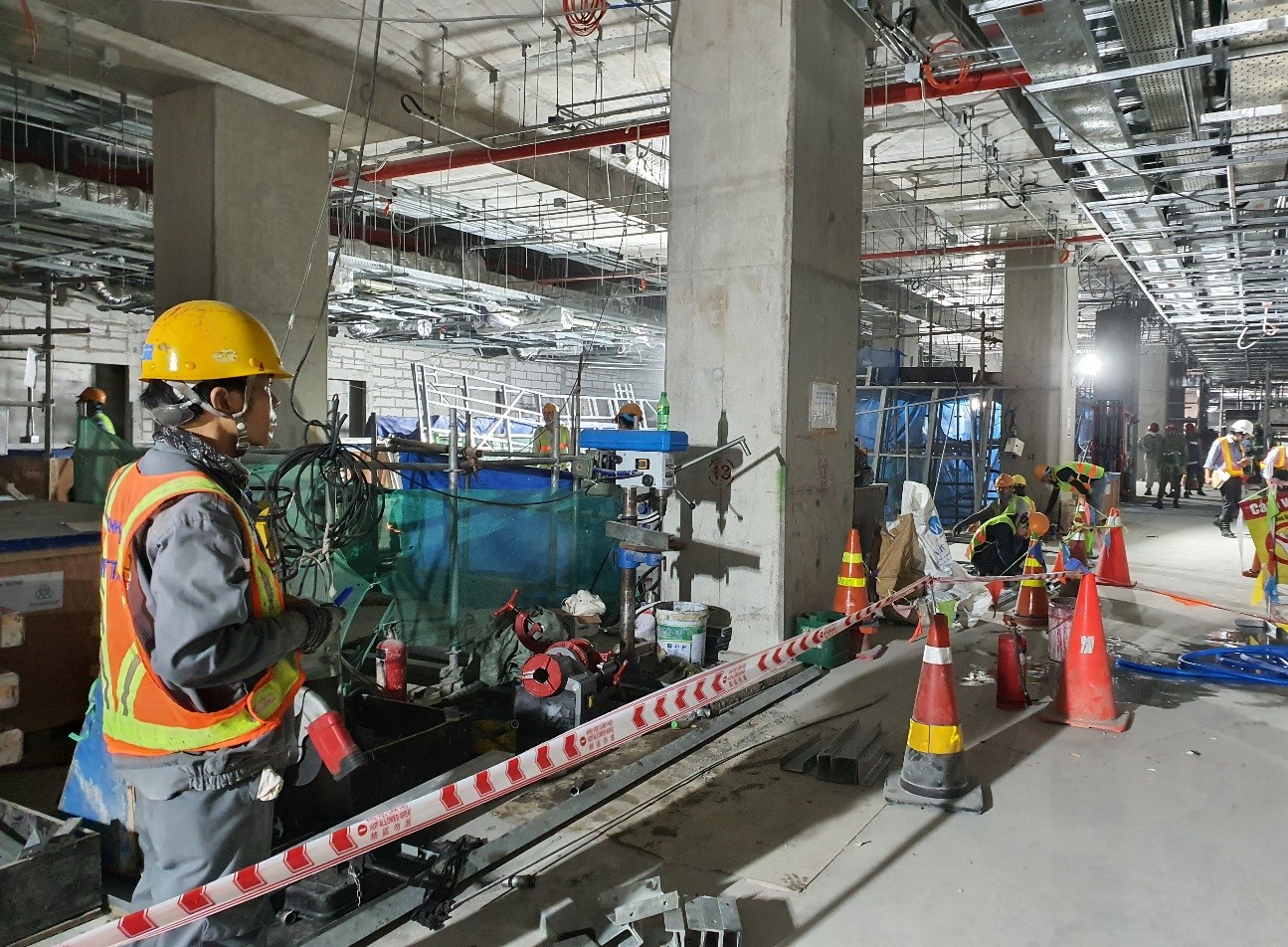 Các công nhân đang tích cực làm việc để hoàn thiện công trình đúng tiến độ