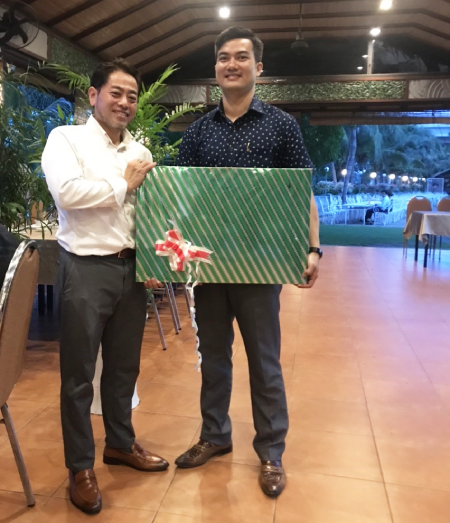 TS. Nguyễn Anh Tuấn, Trưởng phòng Đối ngoại đại diện Trường tặng quà và gửi lời cảm ơn tới Nippon Koei Việt Nam