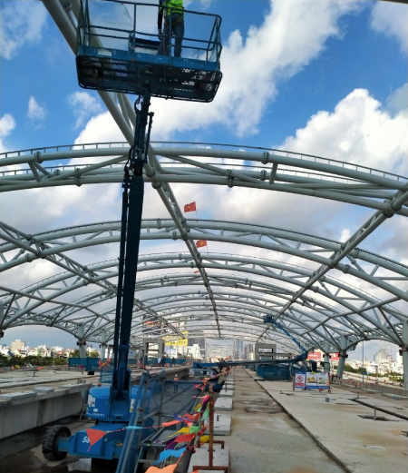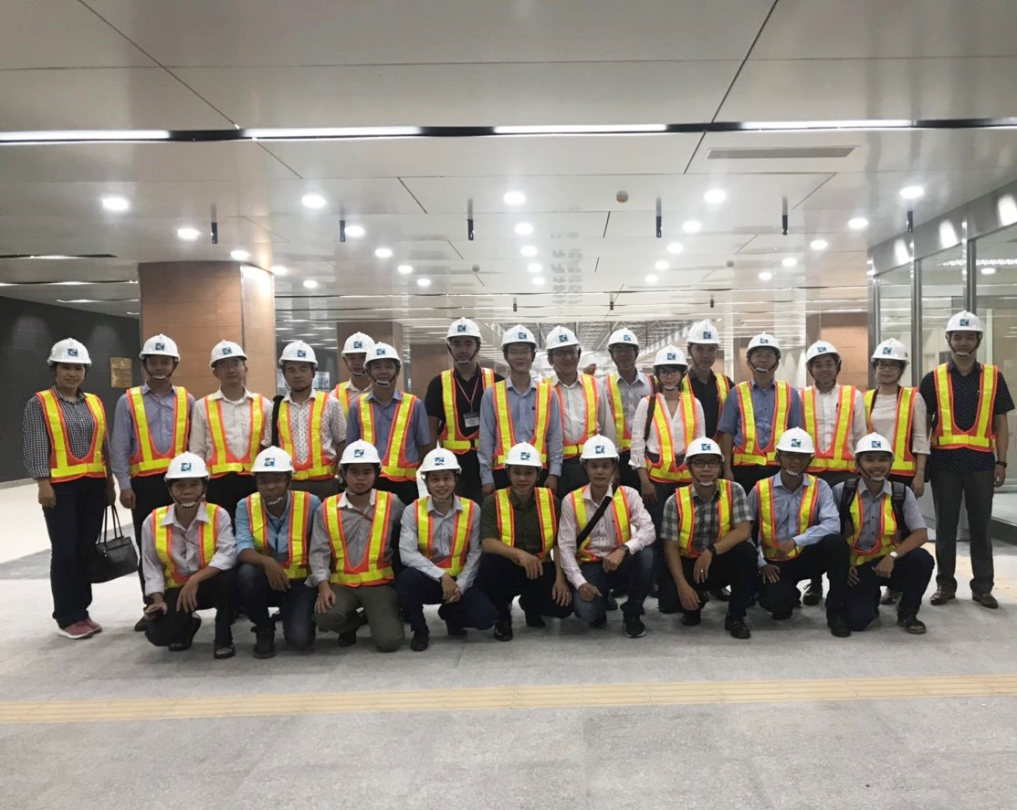 Tuyến Metro số 1 có tổng chiều dài 19,7 km, trong đó có 2,6 km đi ngầm và 17,1 km đi trên cao với 14 ga. Trực tiếp hướng dẫn đoàn tham quan là TS. Yoshiyuki Ishihara, Giám đốc Quản lý dự án Đoạn trên cao của tuyến Metro số 1. PGS.TS. Nguyễn Bá Hoàng, Phó Hiệu trưởng phụ trách dẫn đầu Đoàn tham quan của Trường đến công trường thi công ga nhà hát Thành phố, ga Ba Son, hai trong số ba nhà ga ngầm thuộc tuyến metro số 1, được thiết kế nhiều trang thiết bị tiện ích phục vụ hành khách và Ga Tân Cảng, một trong số 11 nhà ga trên cao.