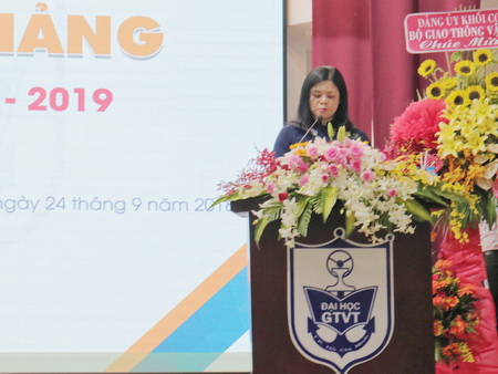 TS. Vũ Thị Lan Anh - Chủ tịch Công đoàn, Phó Chủ tịch Hội đồng Thi đua khen thưởng Nhà trường đã phát động phong trào thi đua của tập thể cán bộ, giảng viên, nhân viên và sinh viên Nhà trường năm học 2018-2019.