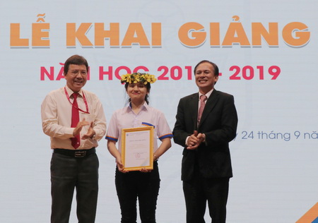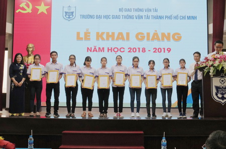 Tại buổi lễ, với mong muốn khơi dậy tinh thần vượt khó, xây dựng hoài bão cho các bạn tân sinh viên, Nhà trường và doanh nghiệp đã trao 44 suất học bổng với tổng giá trị gần 120 triệu đồng cho tân sinh viên. Trung tâm Quan hệ doanh nghiệp & hỗ trợ sinh viên cũng công bố quỹ học bổng ngoài ngân sách mà các doanh nghiệp tài trợ cho Nhà trường trong năm học 2018-2019 gần 400 triệu đồng.