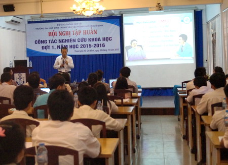 Tại buổi tập huấn, các đại biểu đã được nghe PGS.TS. Vũ Ngọc Bích, Trưởng phòng Khoa học công nghệ, Nghiên cứu và Phát triển đã báo cáo về công tác nghiên cứu khoa học trong sinh viên, hướng dẫn triển khai công tác nghiên cứu khoa học, trong đó có hướng dẫn cách viết văn bản khoa học, cách trình bày bài báo khoa học, báo cáo kết quả nghiên cứu khoa học, kỹ năng thuyết trình...