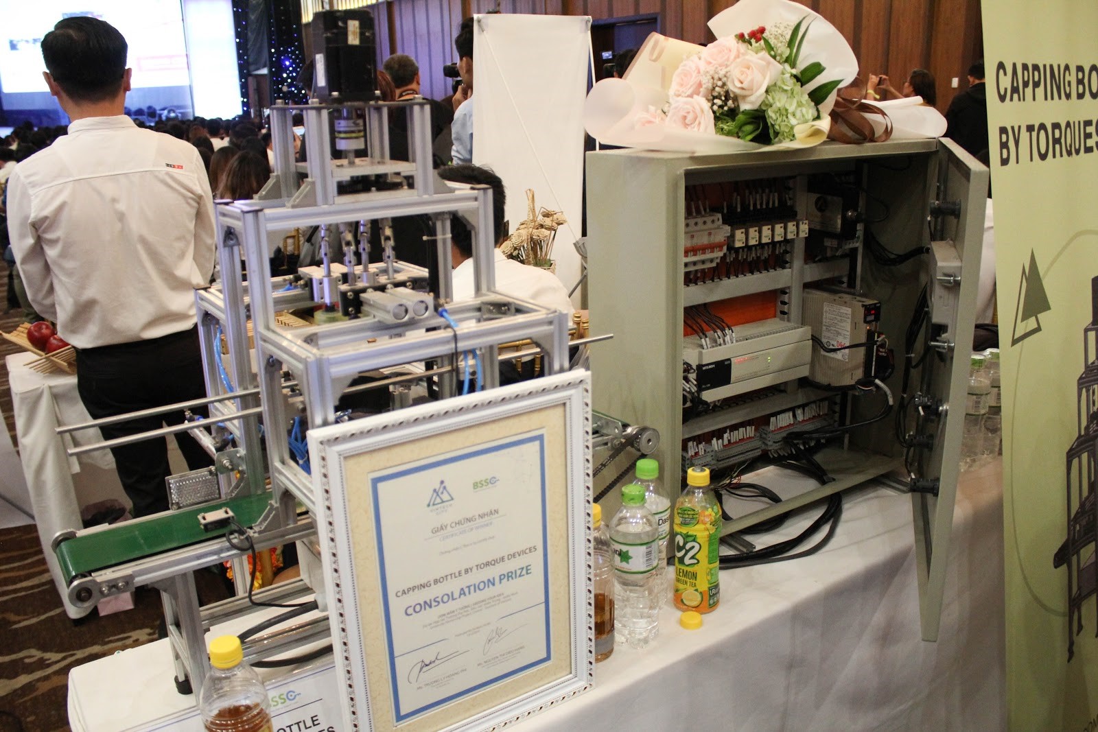 CAPPING BOTTLES BY TORQUE là sản phẩm đầu tiên sử dụng công nghệ mô-men xoắn ngang để đóng nắp chai, kết nối IOT thông minh, có tính ứng dụng cao, đặc biệt trong ngành Food & Beverage; được các sinh viên của trường nghiên cứu và phát triển.