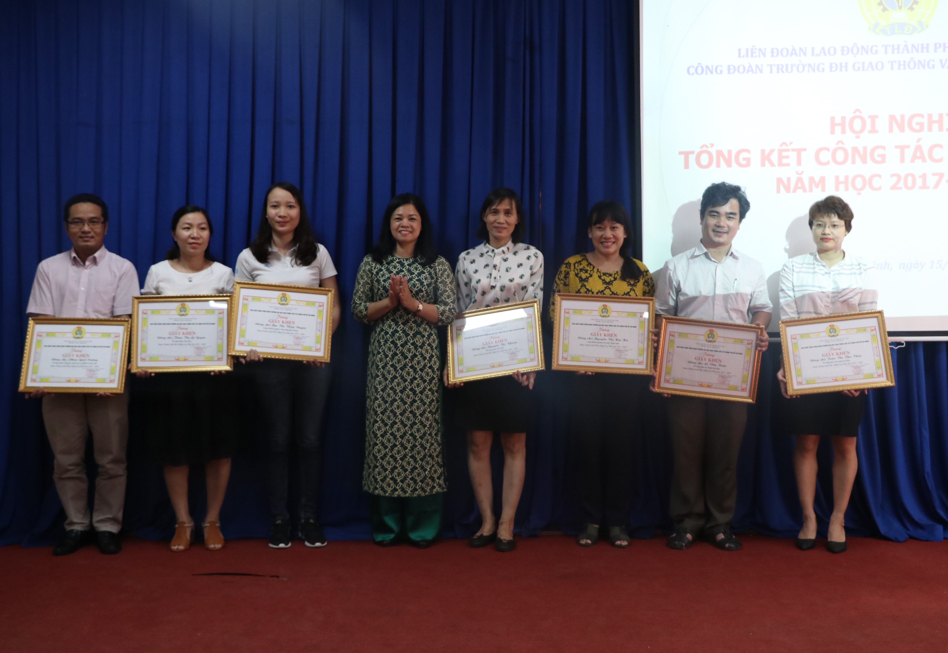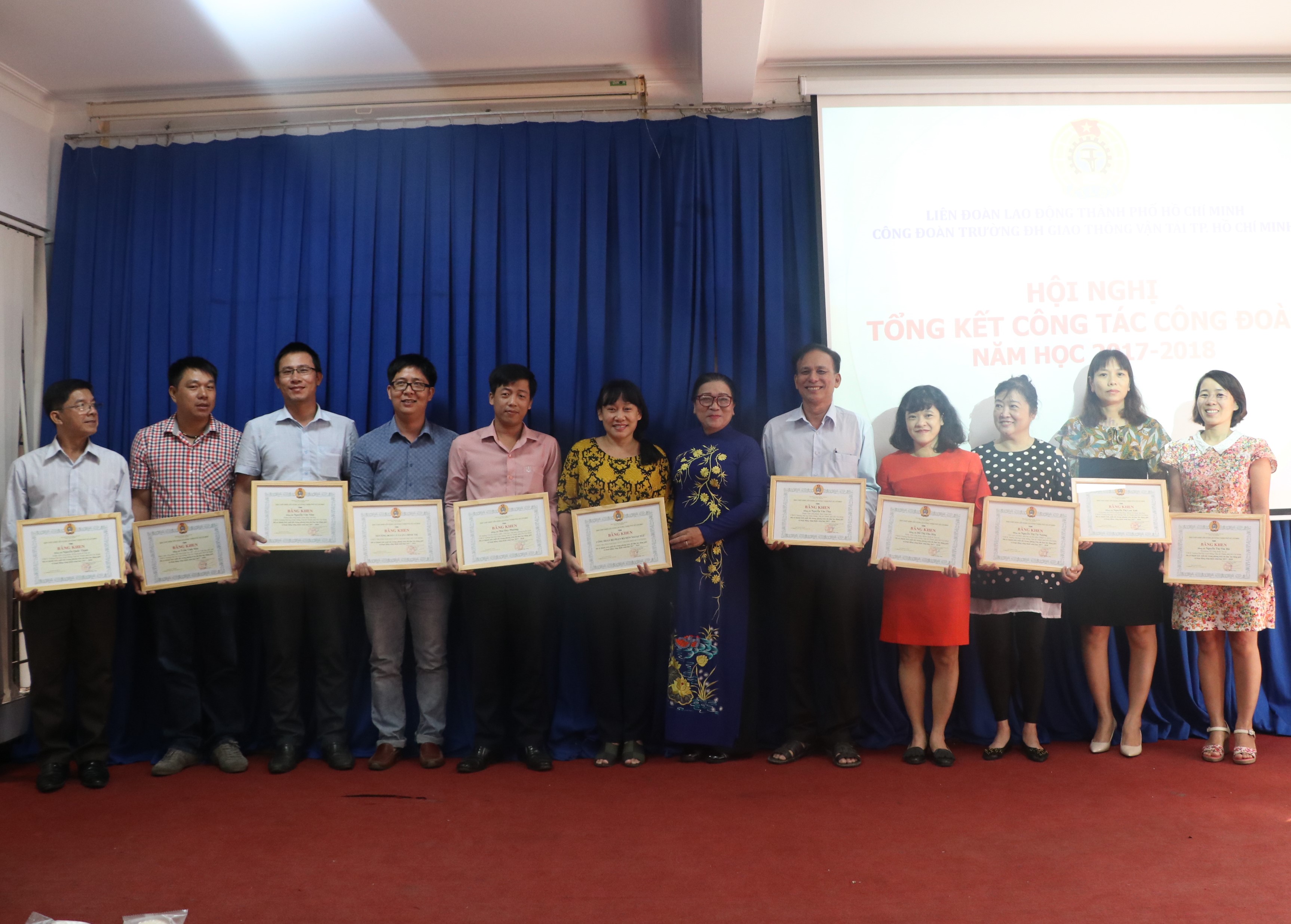 Đại diện Ban Chấp hành Công đoàn trường, đồng chí Vũ Thị Lan Anh, Chủ tịch Công đoàn Trường đã báo cáo hoạt động công đoàn trong năm học 2017-2018. Với 22 công đoàn bộ phận, tổ công đoàn cùng 581 công đoàn viên, được sự quan tâm và chỉ đạo sát sao của Công đoàn cấp trên và Đảng ủy, Ban Giám hiệu Trường, Công đoàn Trường ĐH Giao thông vận tải TP. HCM trong năm học qua đã tập trung xây dựng đội ngũ cán bộ công đoàn có đủ năng lực, có tâm huyết đại diện cho lợi ích của người lao động; đổi mới hoạt động công đoàn phù hợp điều kiện cụ thể của Trường, nâng cao chất lượng hoạt động…. Công đoàn Trường đã tổ chức phát động các phong trào thi đua, thực hiện các chế độ chính sách cho cán bộ, giảng viên và luôn có những sáng tạo trong hoạt động Công đoàn, củng cố, xây dựng tổ chức, nâng cao chất lượng hoạt động công đoàn cơ sở.