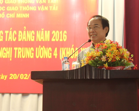 Tại Hội nghị, đồng chí Nguyễn Thành Tài, nguyên UVBTV Thành ủy, nguyên Phó chủ tịch thường trực UBND Thành phố, báo cáo viên đã tập trung giới thiệu để hội nghị nắm vững các nội dung, quan điểm của Đảng trong các Nghị quyết, kết luận của Hội nghị Trung ương 4 (Khóa XII); tạo sự thống nhất cao về nhận thức, ý chí và hành động trong toàn Đảng bộ, từ đó, cổ vũ, động viên cán bộ, đảng viên và người lao động trong Nhà trường tích cực thực hiện các Nghị quyết, kết luận của Hội nghị Trung ương 4.