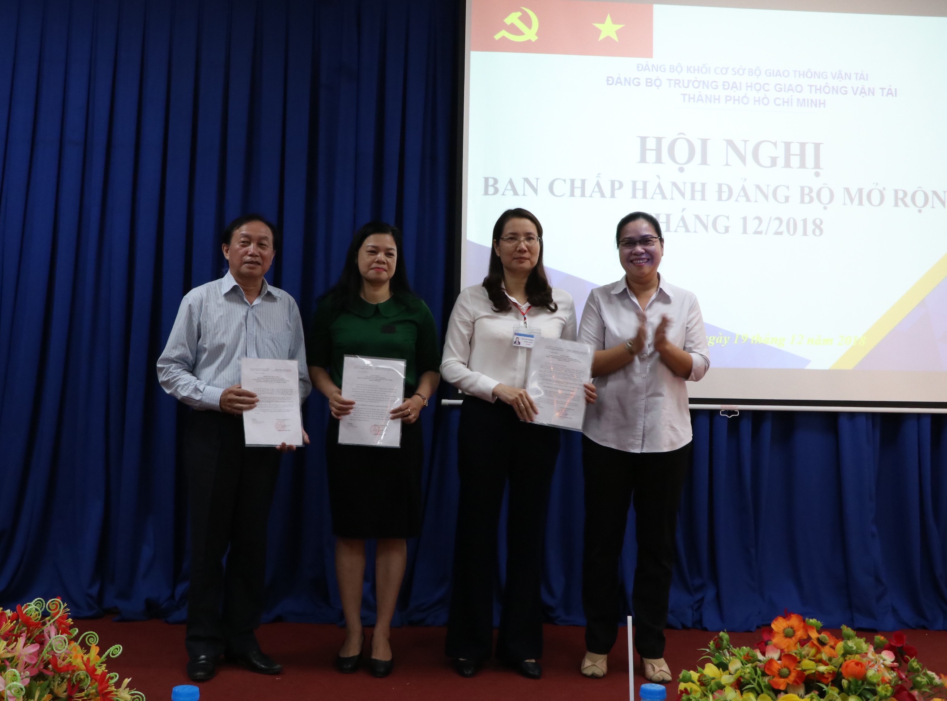 Tại hội nghị, đồng chí Nguyễn Thị Kim Thúy, đại diện Đảng ủy khối cơ sở Bộ Giao thông vận tải trao quyết định cho PGS.TS Nguyễn Văn Thư, Bí thư Đảng bộ Trường ĐH Giao thông vận tải TP.HCM thôi tham gia BCH Đảng bộ nhiệm kỳ 2015-2020 và PGS.TS Đồng Văn Hướng thực hiện nhiệm vụ Bí thư Đảng ủy thay cho đồng chí Nguyễn Văn Thư. Đồng chí Nguyễn Văn Thư tiếp tục là ủy viên Ban Thường vụ Đảng ủy khối cơ sở Bộ GTVT cho đến lúc nghỉ hưu theo chế độ.