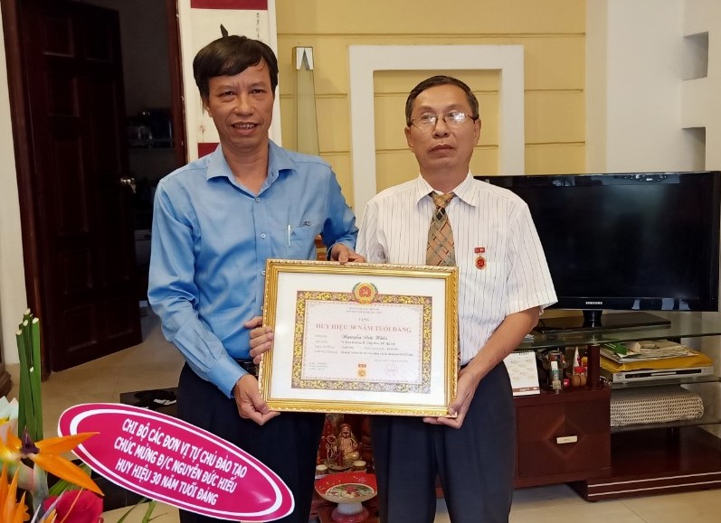 Đại diện Đảng ủy và chi bộ các đơn vị tự chủ đào tạo chúc mừng đồng chí Hiếu
