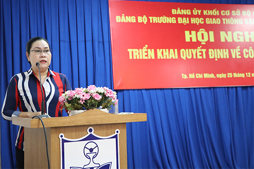 Phát biểu tại hội nghị trên cương vị mới, đồng chí Nguyễn Thị Hồng trân trọng gửi lời cảm ơn đến Thành ủy TP.HCM, Đảng ủy khối cơ sở Bộ Giao thông vận tải, Đảng ủy Trường, các đồng chí cán bộ chủ chốt của Nhà trường đã tin tưởng và tín nhiệm. Được tin tưởng giao trọng trách Bí thư Đảng ủy Nhà trường là niềm vinh dự to lớn của bản thân và xin hứa sẽ nỗ lực hết mình phát huy tinh thần đoàn kết, xây dựng Đảng bộ trong sạch, vững mạnh, tiên phong đi đầu hoàn thành xuất sắc các nhiệm vụ được giao. Tân Bí thư Đảng ủy cũng mong muốn tiếp tục nhận được sự đồng lòng, đoàn kết của toàn thể cán bộ, công nhân viên Trường. Sự chung sức, chia sẻ và đồng cảm của toàn thể cán bộ, giảng viên, công nhân viên, học viên và sinh viên Trường ĐH Giao thông vận tải TP.HCM là cơ sở quan trọng để toàn trường vượt qua giai đoạn đầy khó khăn này.