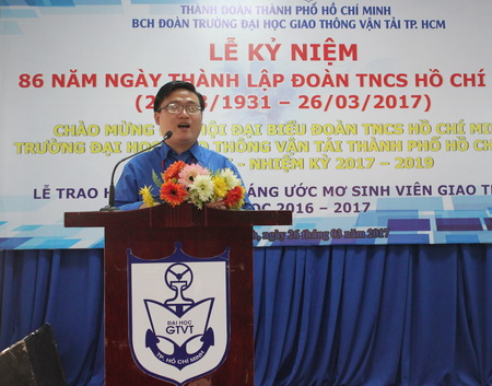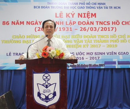 Công tác Đoàn luôn được Đảng ủy, Ban Giám hiệu Nhà trường quan tâm sâu sắc. Phát biểu tại buổi lễ, PGS.TS. Nguyễn Văn Thư, Hiệu trưởng, Bí thư Đảng ủy Nhà trường đánh giá cao vai trò xung kích của đoàn viên, sinh viên Trường trong việc phát triển Nhà trường. Đồng chí nhấn mạnh, đoàn viên cần phát huy hơn nữa tinh thần sáng tạo, cần kết hợp nhuần nhuyễn giữa phong trào học tập và phong trào Đoàn – Hội, bên cạnh đó đoàn viên, sinh viên cần có bản lĩnh hội nhập, trái tim nhân hậu, thể hiện quyết tâm sẵn sàng đón nhận mọi nhiệm vụ, đương đầu với mọi khó khăn, thử thách, xứng đáng truyền thống đi trước mở đường của ngành giao thông vận tải.