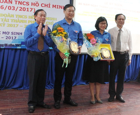 Đồng chí Lê Quốc Phong, đồng chí Trần Hoàng Khánh Vân và đại diện Nhà trường