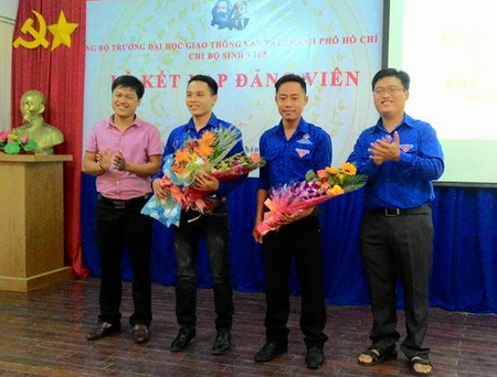Đại diện Đoàn trường tặng hoa chúc mừng cho 02 đồng chí