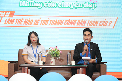 Hai khách mời đã có nhiều chia sẻ quý báu, giúp các sinh viên hiểu sâu hơn về khái niệm Công dân toàn cầu và những kinh nghiệm học tập và phát triển bản thân quý báu theo giá trị cốt lõi của việc học theo UNESCO định nghĩa - “học để biết, học để làm, học để chung sống và học để khẳng định bản thân”.