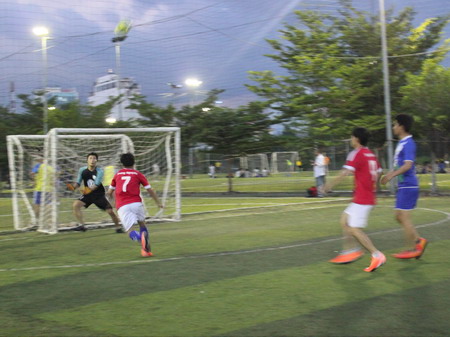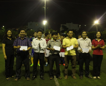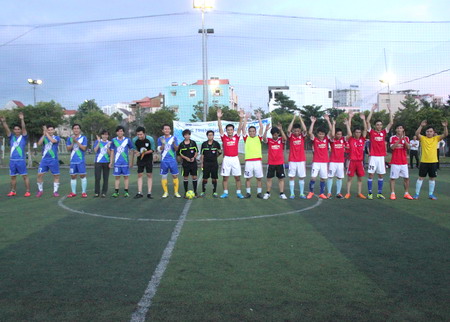 Đội Kinh tế vận tải (áo xanh) và đội khối phòng ban trong trận chung kết ngày 18/11/2015
