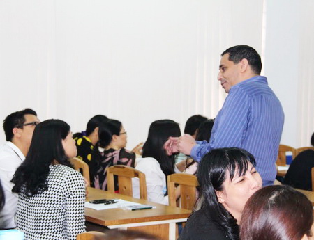 Chuyên gia trao đổi với giảng viên về bộ giáo trình