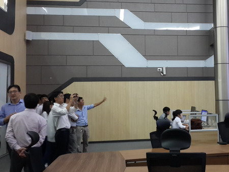 Đoàn chụp hình lưu niệm tại Trung tâm quản lý và vận hành