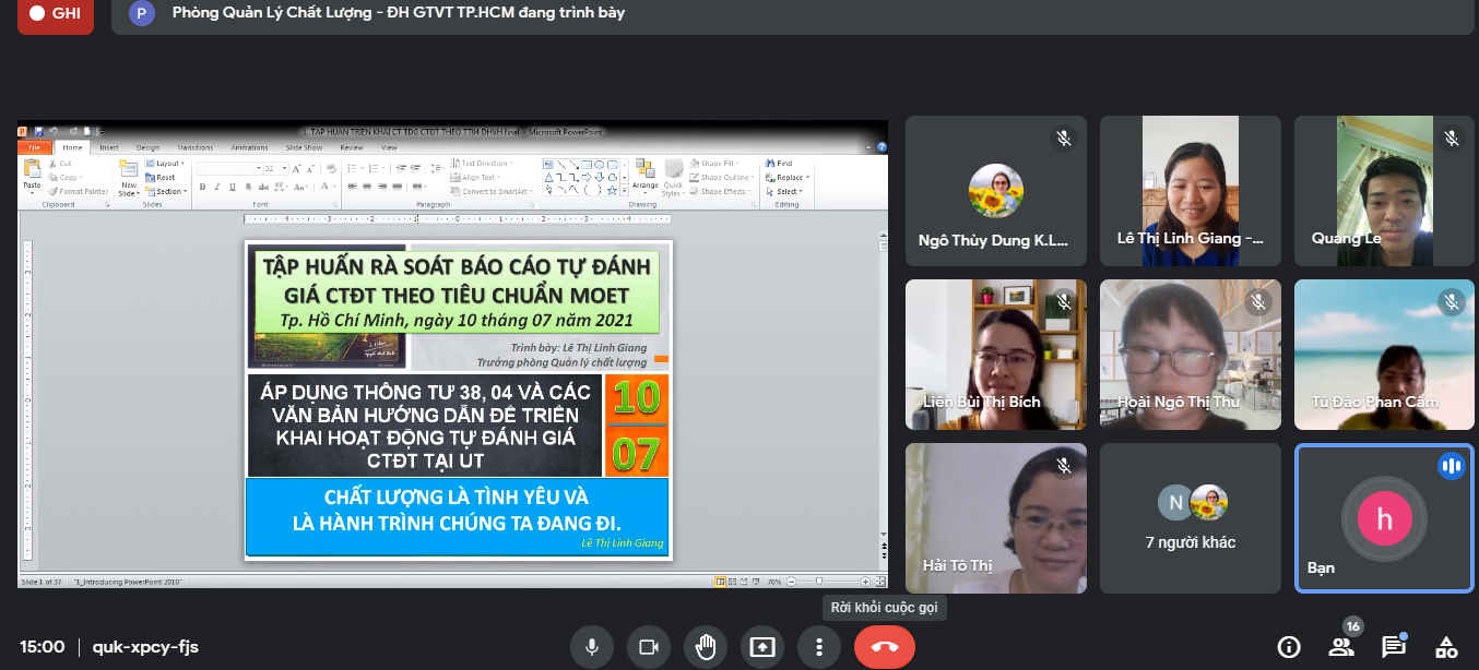 Tại buổi tập huấn, TS. Lê Thị Linh Giang, Trưởng phòng Quản lý chất lượng đã giới thiệu Lý thuyết phát triển chương trình đào tạo (CTĐT), Kỹ thuật thiết kế đề cương chi tiết học phần, cách thức xây dựng Rubrics và đưa ra các ví dụ minh họa đề cương chi tiết học phần. TS. Nguyễn Văn Long, Phó Trưởng khoa Công trình giao thông cũng đã giới thiệu cách xây dựng đề cương chi tiết của Khoa, minh họa bằng các ví dụ dễ hiểu.