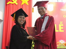 | Đại diện lãnh đạo nhà trường, các giảng viên và nhóm nghiên cứu chụp hình lưu niệm |