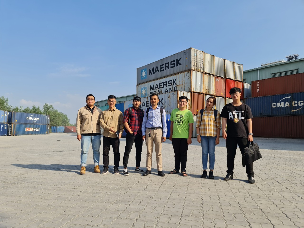 Điểm đến đầu tiên của đoàn là Cảng Container quốc tế SP-ITC Quận 9, TP. HCM. Ở đây, các học viên được giảng viên giảng dạy trực tiếp lưu lượng hàng hóa, số container, quy trình cập bến, hoạt động hàng hải chi tiết,…
