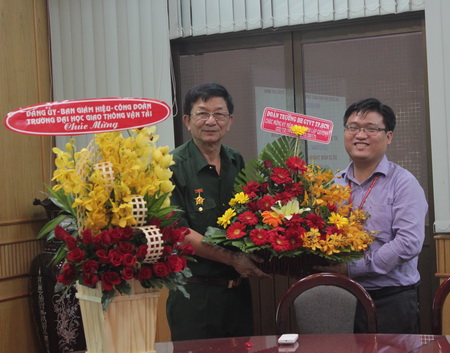 Đại diện Đảng ủy, Công đoàn Trường tặng hoa chúc mừng Hội Cựu chiến binh