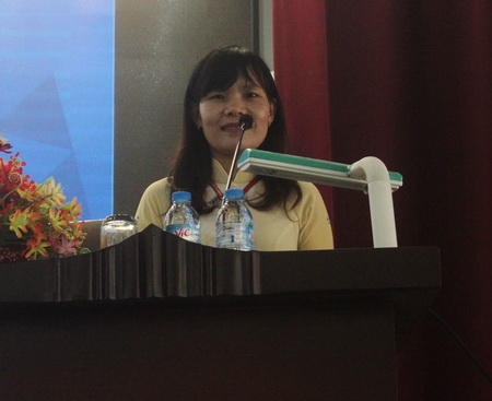Đồng chí Nguyễn Thị Hạnh, Kế toán trưởng báo cáo công tác thu chi tài chính năm 2016
