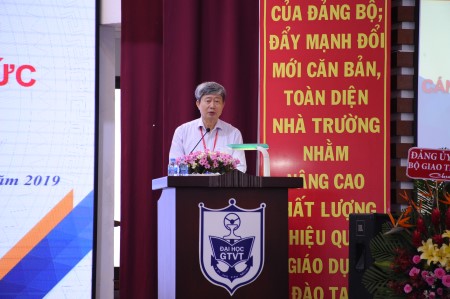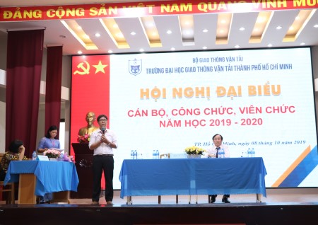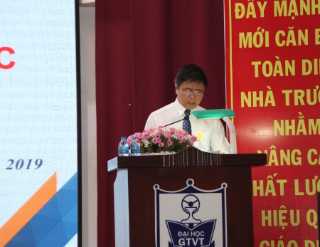 Hội nghị đã nghe PGS.TS. Nguyễn Xuân Phương, Phó Hiệu trưởng nhà trường báo cáo kết quả thực hiện Nghị quyết Hội nghị công chức viên chức năm học 2018-2019 và phương hướng năm học 2019-2020 trong công tác đào tạo; công tác quản lý sinh viên; công tác tổ chức cán bộ; công tác nghiên cứu khoa học và hợp tác quốc tế; công tác tài chính, cơ sở vật chất và một số hoạt động khác. Trong đó, phương hướng năm học mới là tiếp tục triển khai thực hiện Chiến lược phát triển nguồn nhân lực tới năm 2020 của Bộ GTVT và Chiến lược phát triển tới năm 2020 và tầm nhìn tới năm 2030 của Nhà trường, triển khai thực hiện tốt Luật sửa đổi, bổ sung một số điều của Luật Giáo dục Đại học, phấn đấu đưa Nhà trường trở thành một trung tâm đào tạo nguồn nhân lực chất lượng cao cho ngành GTVT ở phía Nam.