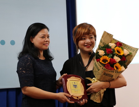 TS. Vũ Thị Lan Anh, Chủ tịch Công đoàn Trường tặng hoa và quà cho diễn giả và đại diện công ty RSVP