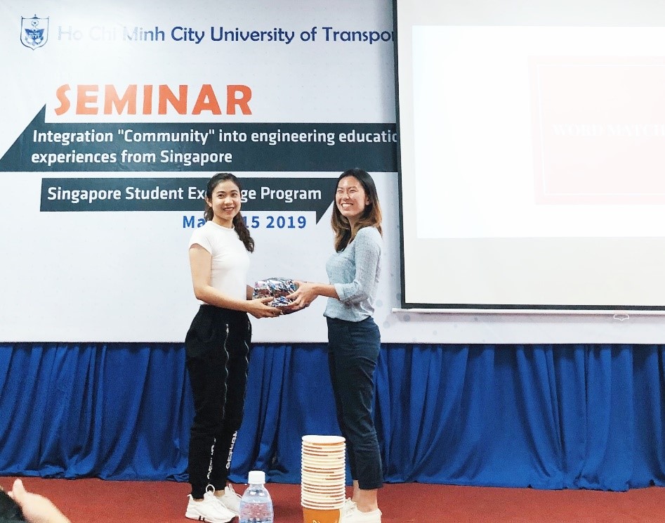 Sau buổi hội thảo, sinh viên Trường Đại học Giao thông vận tải TP. Hồ Chí Minh đã có buổi giao lưu văn hóa, văn nghệ với sinh viên Trường Đại học công nghệ và thiết kế Singapore và tặng quà kỉ niệm cho các bạn sinh viên trường bạn.