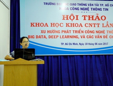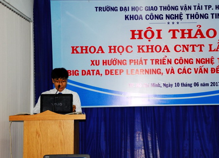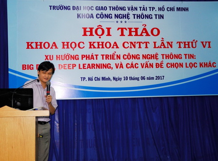 Chiều ngày 10/06/2017, tại cơ sở chính của Trường ĐH GTVT TP. HCM, Khoa Công nghệ thông tin đã tổ chức thành công hội thảo khoa học lần thứ VI với chủ đề “Xu hướng phát triển công nghệ thông tin: big data, deep learning và các vấn đề chọn lọc khác”. Hội thảo được tổ chức với mong muốn khơi gợi ra các vấn đề thời sự, các xu hướng công nghệ đang phát triển để cùng thảo luận và trao đổi chuyên môn giữa các giảng viên trong Khoa và các diễn giả khách mời.