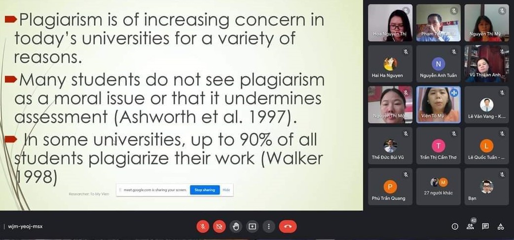 ThS. Tô Mỹ Viện đã mở đầu Hội thảo với báo cáo “The correlation between teaching in students’ English language proficiency”. Báo cáo đã trình bày những kết quả nghiên cứu cụ thể, thiết thực, và nêu ra một số biên pháp cải tiến cách đánh giá năng lực tiếng Anh của sinh viên. Cử tọa của hội thảo đã đánh giá cao tính thiết thực của đề tài cũng như tính nghiêm túc của tác giả trong hoạt động nghiên cứu, khảo sát.