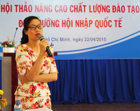 ThS. Nguyễn Thúy Hồng Vân trình bày tham luận “Quốc tế hóa giáo dục tại Trường ĐH GTVT TP.HCM, đã đến lúc thực hiện”