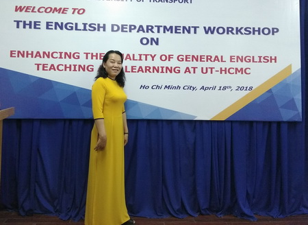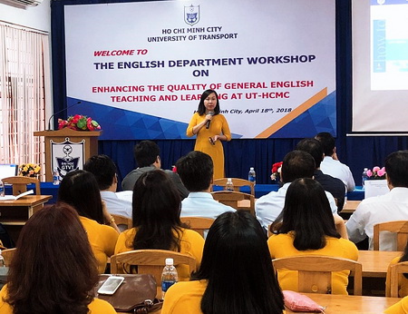 Mở đầu Hội thảo, ThS. Võ Thụy Ngọc Dung trình bày về những khó khăn sinh viên các lớp tiếng Anh tổng quát gặp phải trong quá trình học và thực hành kĩ năng nói. ThS. Ngọc Dung đã trao đổi các cách tiếp cận giúp sinh viên tự tin hơn khi tham gia vào các hoạt động phát triển kỹ năng nói cho sinh viên và trình bày một số giải pháp khả thi mà giáo viên ngoại ngữ có thể áp dụng cho các lớp học Tiếng Anh tổng quát.