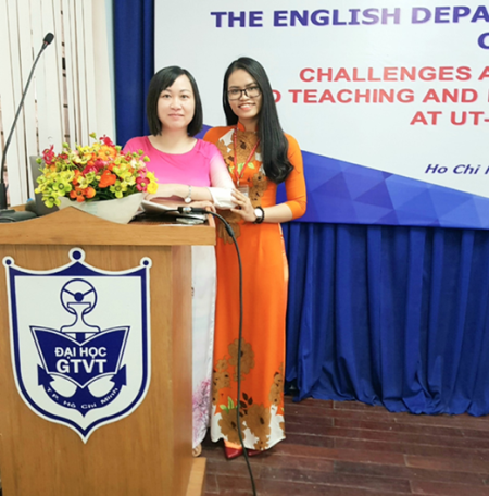 Mở đầu Hội thảo là phần trình bày của ThS.Trần Kim Hiền với nội dung "Những khó khăn sinh viên các lớp Tiếng Anh chuyên ngành kỹ thuật gặp phải khi đọc hiểu Tiếng Anh chuyên ngành". Với những hoạt động khảo sát chi tiết và nghiêm túc, ThS. Kim Hiền đã trình bày những kết quả nghiên cứu cụ thể, thiết thực và nêu ra một số biên pháp cũng như hướng khắc phục, giúp sinh viên có thể đọc hiểu các bài đọc về chuyên ngành dễ dàng và có hiệu quả hơn.