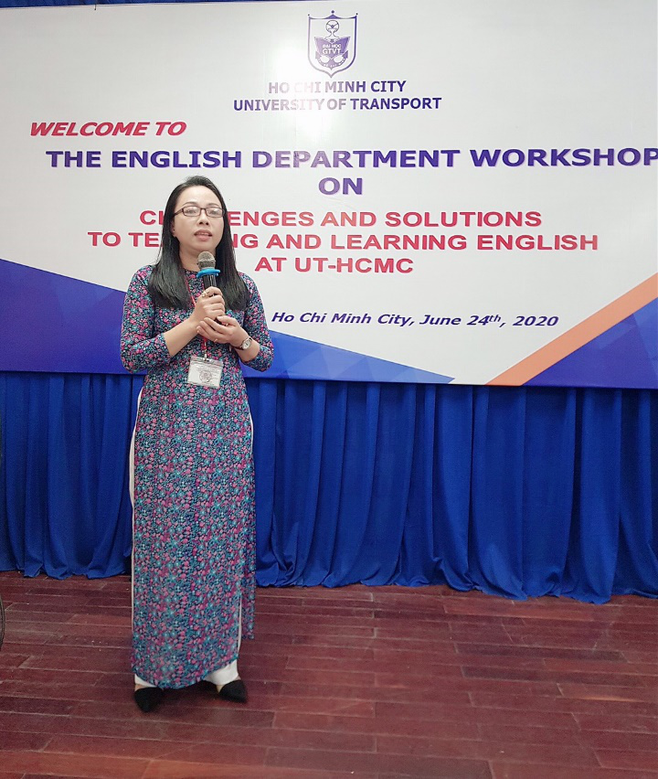 Phần trình bày của Ths. Võ Thụy Ngọc Dung và giảng viên Nguyễn Thị Hoa với đề tài "Ứng dụng trò chơi trực tuyến nhằm kích thích việc học từ vựng của sinh viên". Các báo cáo viên đã đưa ra những bước thực hành cụ thể lôi cuốn các giảng viên tham gia, tạo không khí sinh động cho buổi Hội thảo