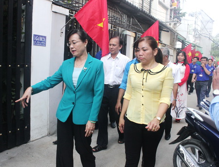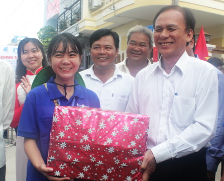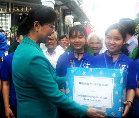 Phó Bí thư Thành ủy, Chủ tịch HĐND TP.HCM Nguyễn Thị Quyết Tâm tặng quà cho chiến sĩ MHX