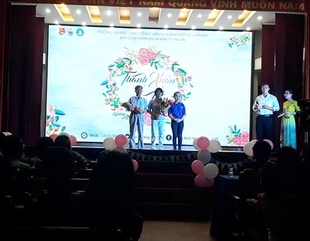Đại diện quý thầy cô Khoa Kinh tế vận tải nhận bó hoa tươi thắm từ BTC