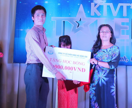 Anh Bùi Công Hoan, đại diện cảng Lotus cũng trao tặng học bổng trị giá 10 triệu đồng cho sinh viên Khoa Kinh tế vận tải