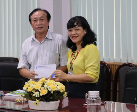 PGS.TS Đồng Văn Hướng chúc đội thi tốt và trao quà khich lệ Ban huấn luyện cùng các bạn sinh viên dự thi